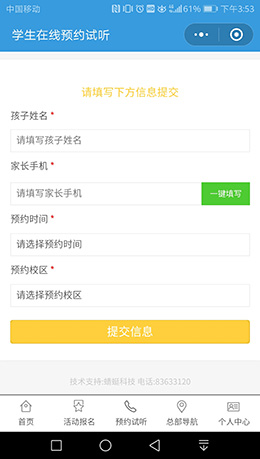 报名设预约报名期,在期限内预约用户进行报名。预约报名期内,用户通过填写和提交个人信息的方式进行报名,在约定期限内报满为止。